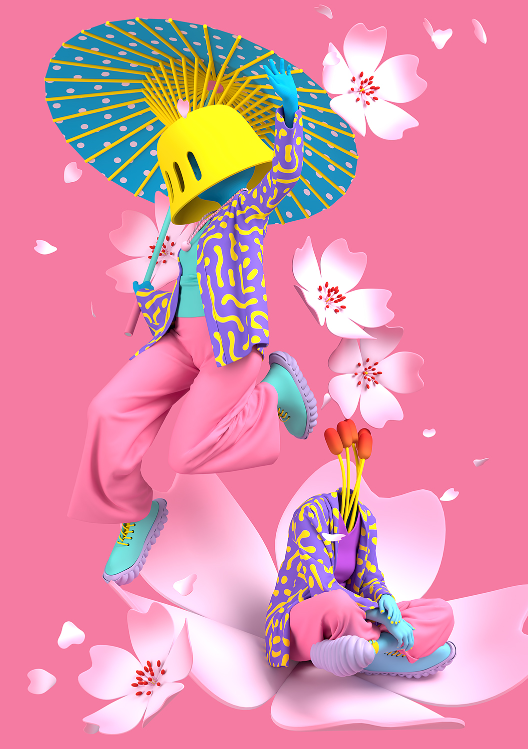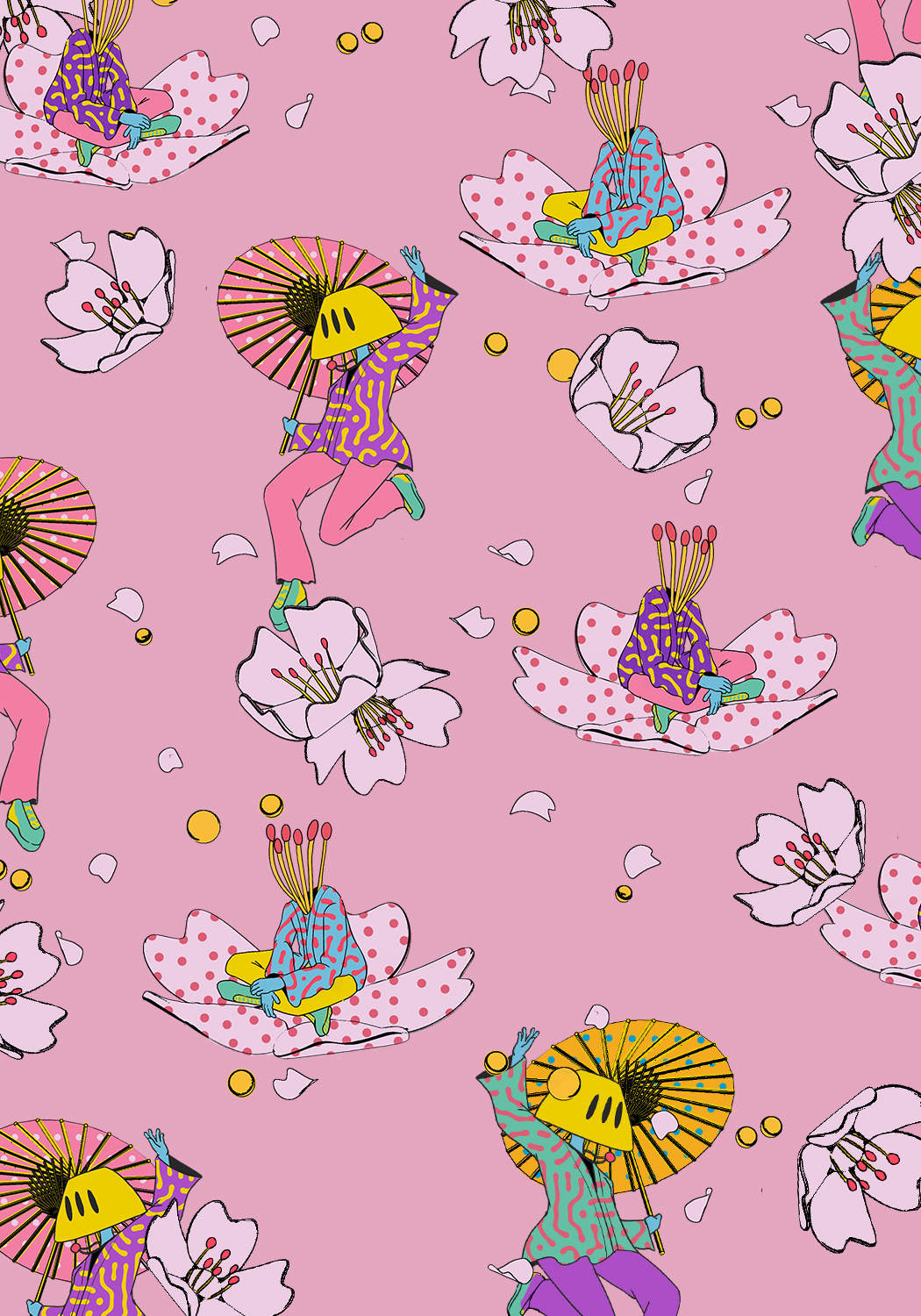 I collaborated with Takasago to create a Furoshiki pattern inspired by cherry blossoms, celebrating the Hanami season.